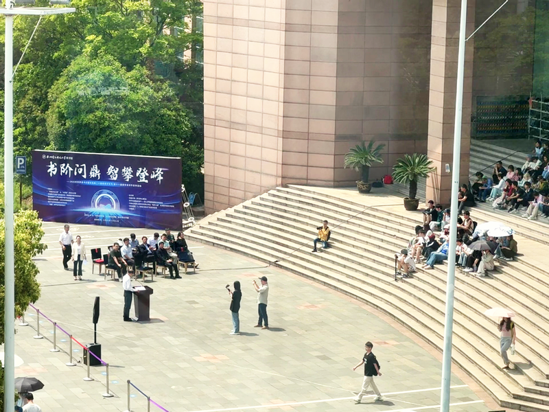 4月23日下午1点,图书馆门前广场上气氛热烈,2025年世界读书日暨杭电第二十届阅读文化节、第十八届星空读书节系列活动开幕式在此隆重举行。本次活动由图书馆、人艺数法学院、国际教育学院联合主办,开幕式由人艺数法学院党委书记冯瑛主持,校党委副书记戚明钧出席活动并讲话。