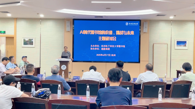 6月27日下午,由图书馆主办、超星集团协办的关于“AI时代图书馆的价值、挑战与未来”主题研讨会,在科技馆扇形会议室顺利举办。在杭高校图书馆的50余位嘉宾参会。浙江省高校图工委学术委员会主任赵继海、超星集团北京总部的AI馆员产品总监郝前鹏,以及杭电科教研究评价院的王琳教授受邀出席并担任主讲嘉宾。研讨会由杭电图书馆馆长徐明教授主持。