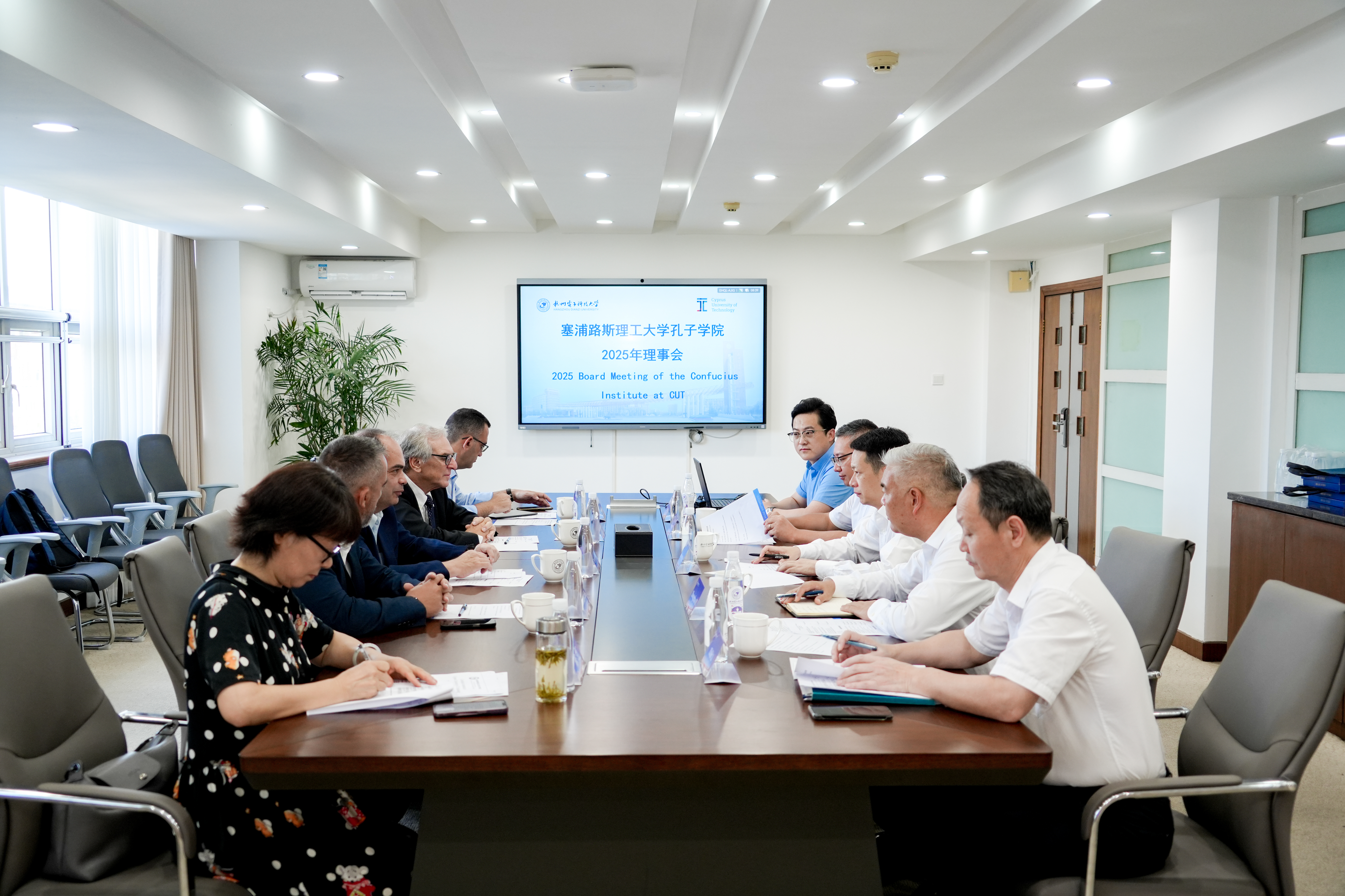 陈积明代表学校热烈欢迎扎菲里斯、卡拉卡萨尼斯及各位理事的到来。他充分肯定并高度评价了孔院自成立后在多个领域取得的成绩,同时衷心感谢塞理工对孔院的支持。他强调,未来我校将继续在师资、资源等方面给予孔院有力支持,与塞理工携手,为孔院的稳定运行和高质量发展提供坚实保障,并希望依托孔院这一平台,推进双方开展全方位、深层次的合作。