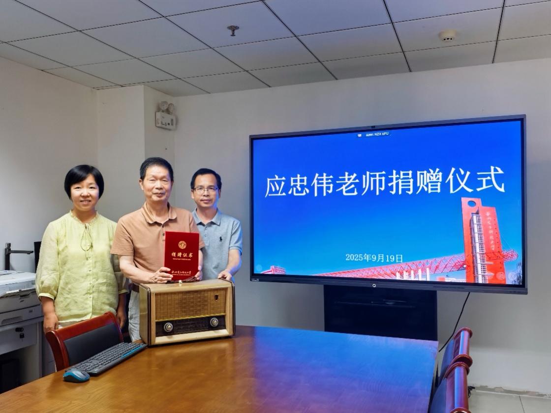 9月19日下午,一场温馨而庄重的实物档案捐赠仪式在档案馆举行。退休教师应忠伟老师将家中一台珍藏多年依旧保存完好的熊猫牌电子管收音机无偿捐赠给学校档案馆。离退休工作处处长王海南、档案馆馆长余玉龙出席了捐赠仪式。