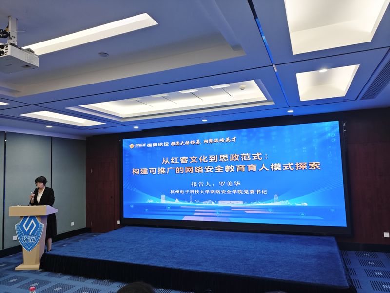在分论坛上,网络空间安全学院党委书记罗美华以《从红客文化到思政范式:构建可推广的网络安全教育育人模式探索》为题,向国内同行系统阐述了学院的育人理念与实践路径。报告指出,面对传统网络安全教育中“重技术、轻素养”与思政教育“重理论、轻实践”的现实困境,学院独辟蹊径,深度挖掘并系统提炼了以“红”的底色、“客”的担当、“守”的准则、“创”的智慧为核心的“红客文化”,将其视为实现技术与思政深度融合的“宝贵富矿”与“理想载体”。